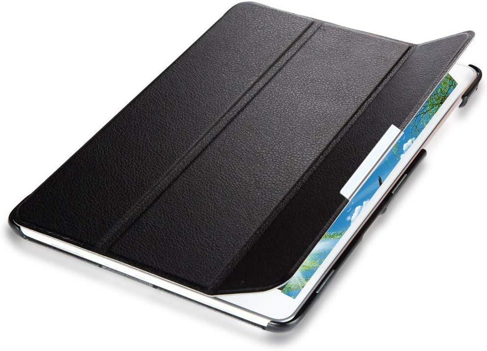 Protect your Samsung Galaxy Tab A 9.7 (2015 Edition) with this slim black case. Designed for a precise fit, it features a durable protective back and a lightweight front cover. The foldable stand supports comfortable viewing and typing, making it ideal for daily use at home, school, or work.
