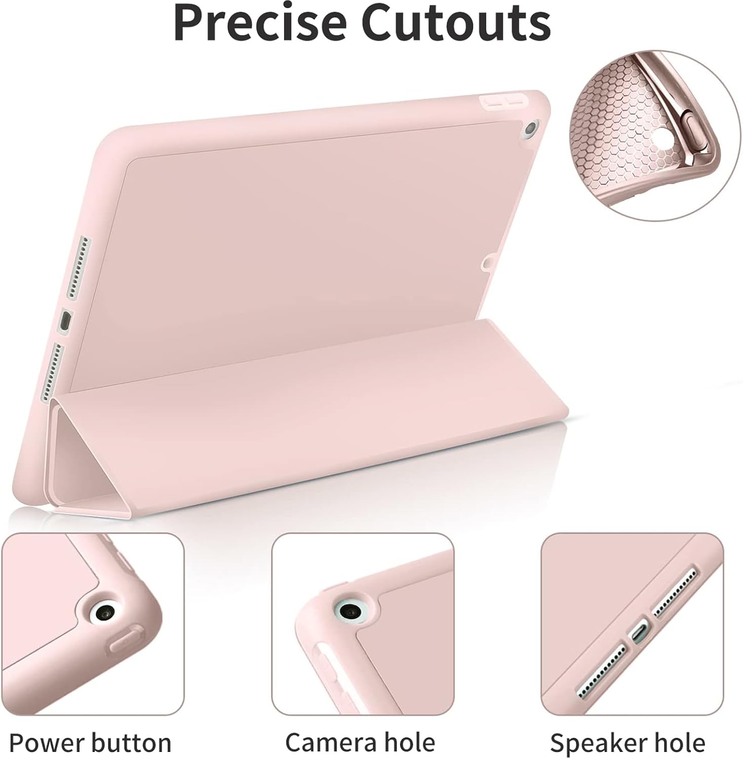 Case for iPad 6th/5th Generation (2018/2017 Model) 9.7 Inch with Pencil Holder, Lightweight Smart Stand Cover with Soft TPU Back, Auto Wake/Sleep – PINK
