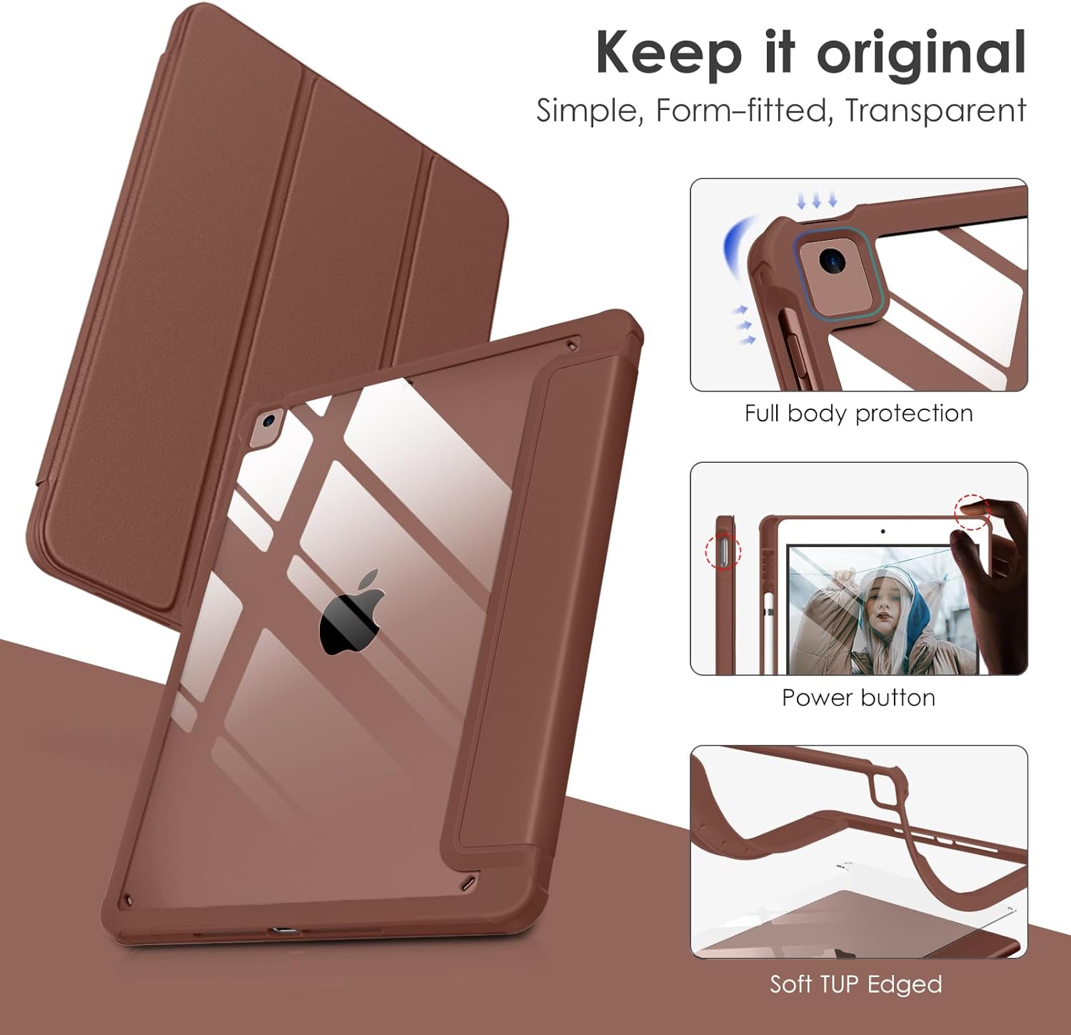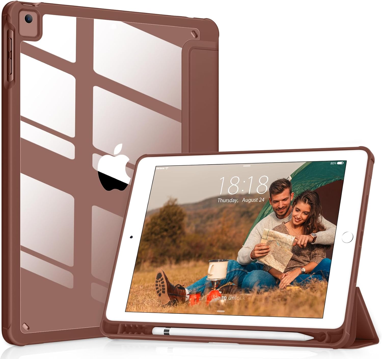 Case for iPad 6th / 5th Generation 9.7 inch Case (2018/2017), iPad Air 2 & 1 (2014/2013) Case, translucent Back, Smart Cover [Built-in Pencil Holder, Auto…(DARK BROWN)