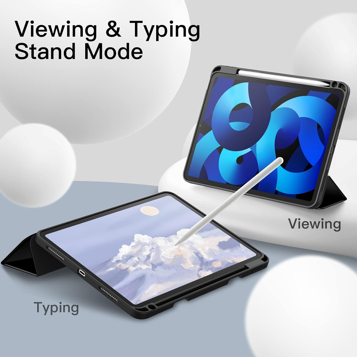 The soft TPU back absorbs shocks and shields against scratches, while the built-in pencil holder ensures your stylus is always secure and accessible. The magnetic trifold front cover lets you enjoy adjustable viewing angles for typing, watching, or reading, and supports auto wake/sleep to save battery life.