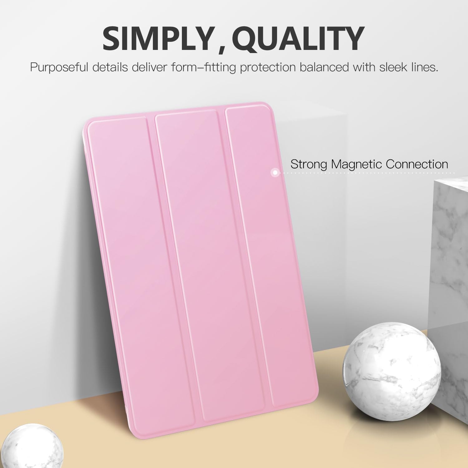 Protect your iPad 11th generation (11-inch, 2025, A16 Bionic) with this pink case. Features a built-in pencil holder, soft TPU back, and trifold smart cover with multiple viewing angles. Lightweight, slim, and stylish, it supports auto wake/sleep and provides reliable protection for everyday use.