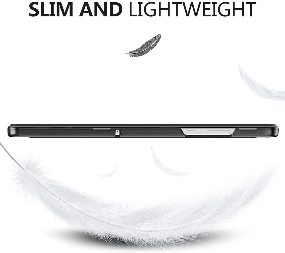 The magnetic front cover supports auto sleep/wake functionality, conserving battery and improving responsiveness. The trifold design easily converts into a stand, offering stable angles for viewing videos, typing emails, or attending Zoom calls.